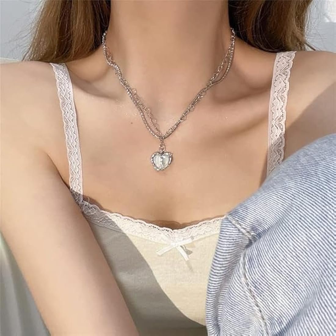 Crystal Silver Pendant Aesthetic Asymmetric